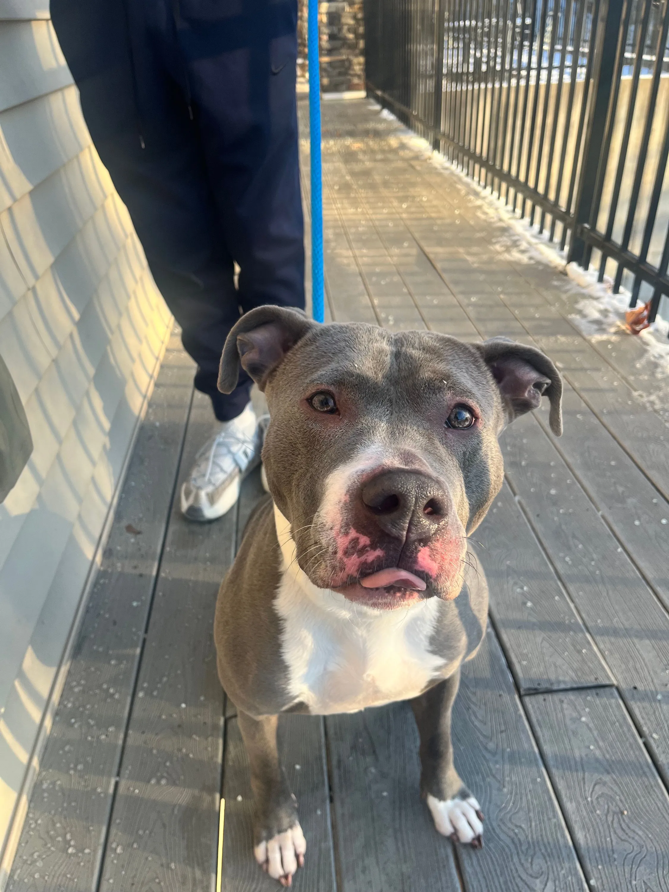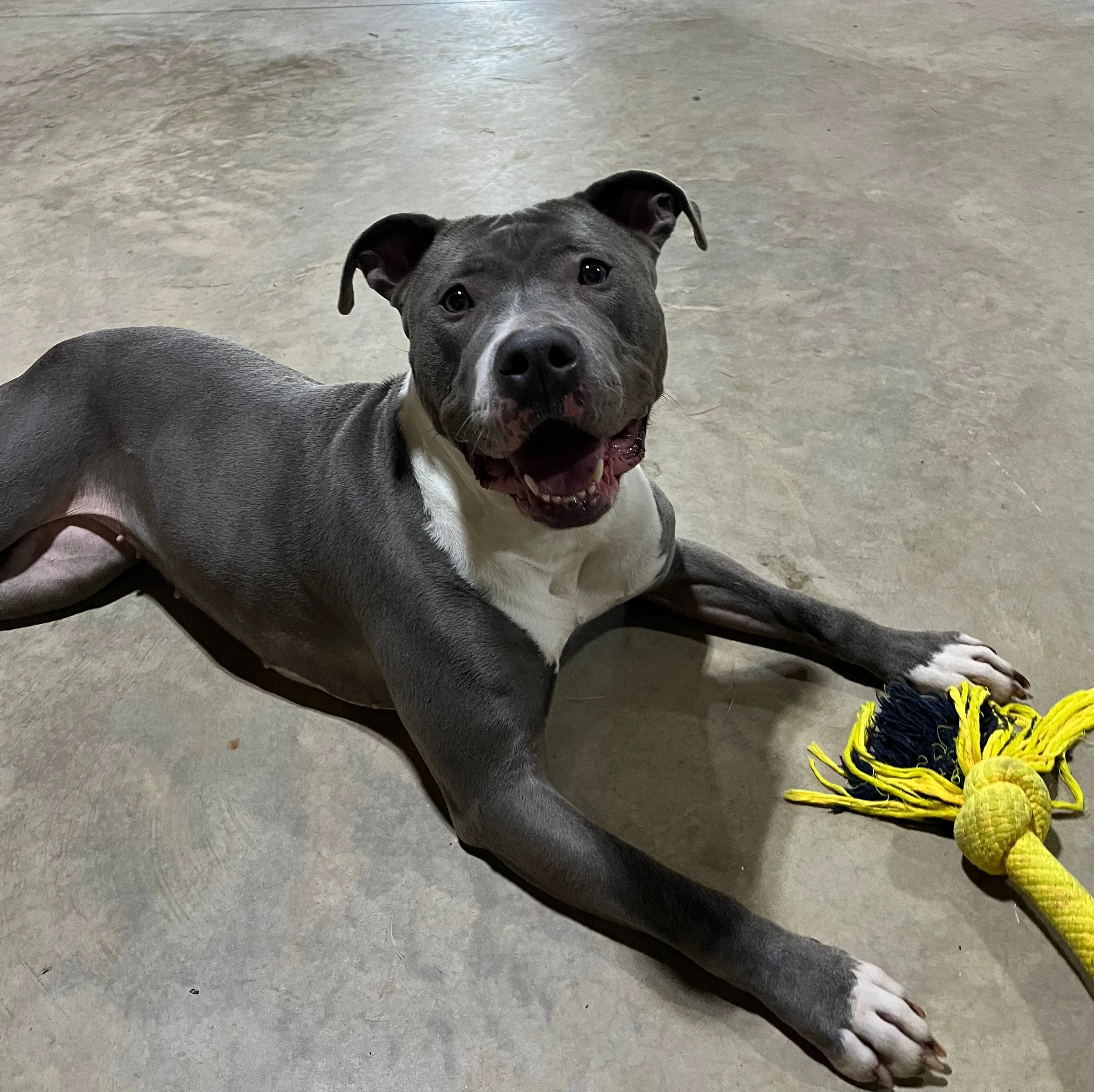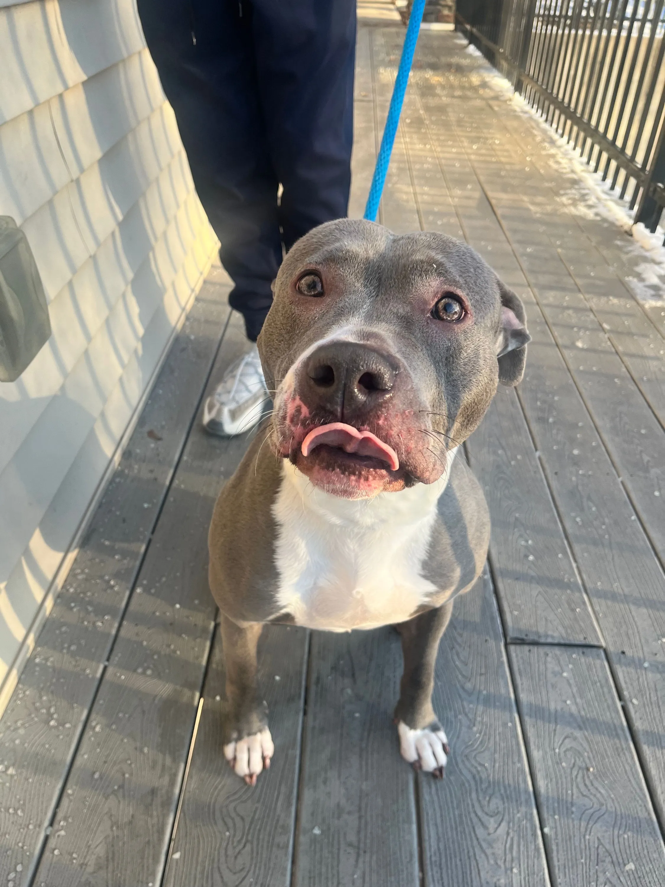 We thought Dolly needed a break from shelter life and we thought she could use a little break. Here at Prospect Ridge we've been enjoying getting to know her personality. Dolly is an approximately 2-3 years old Pit Bull Terrier Mix, always happy and is ready to be your go-to companion! She would do great not only with someone who has a backyard, but the real perk would be that her adopter would enjoy daily walks with her. Do you like hiking? Dolly loves the outdoors and would likely make a great hiking companion.