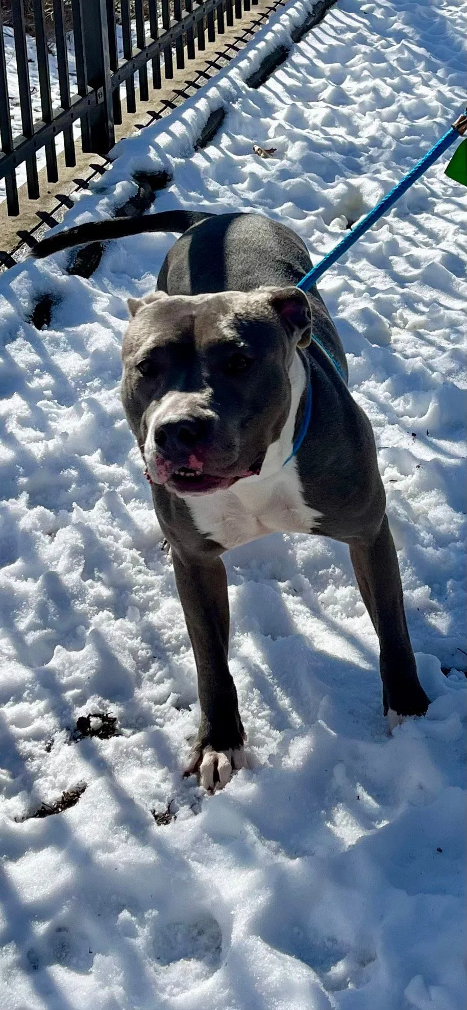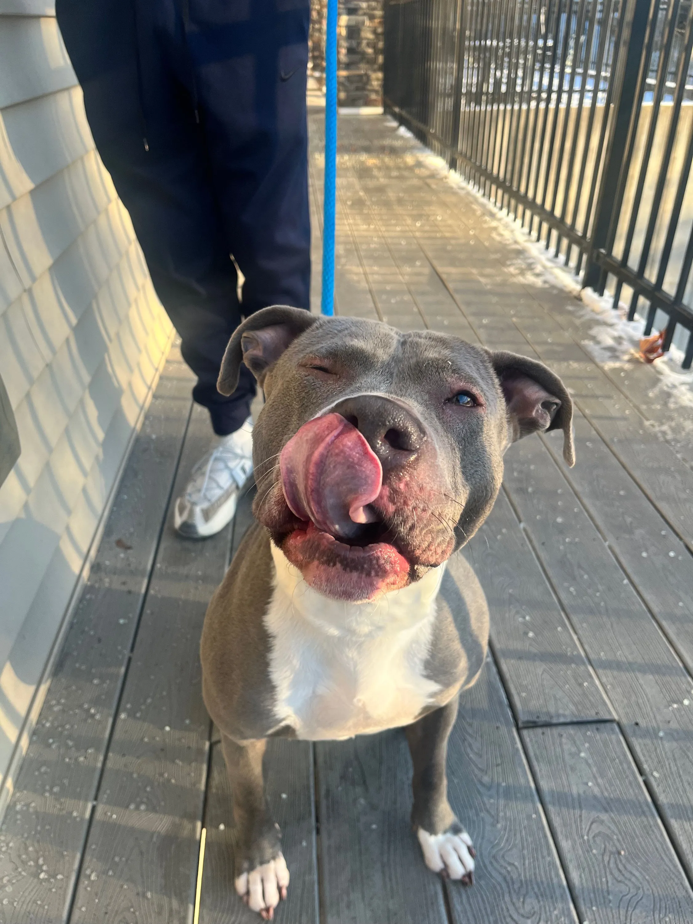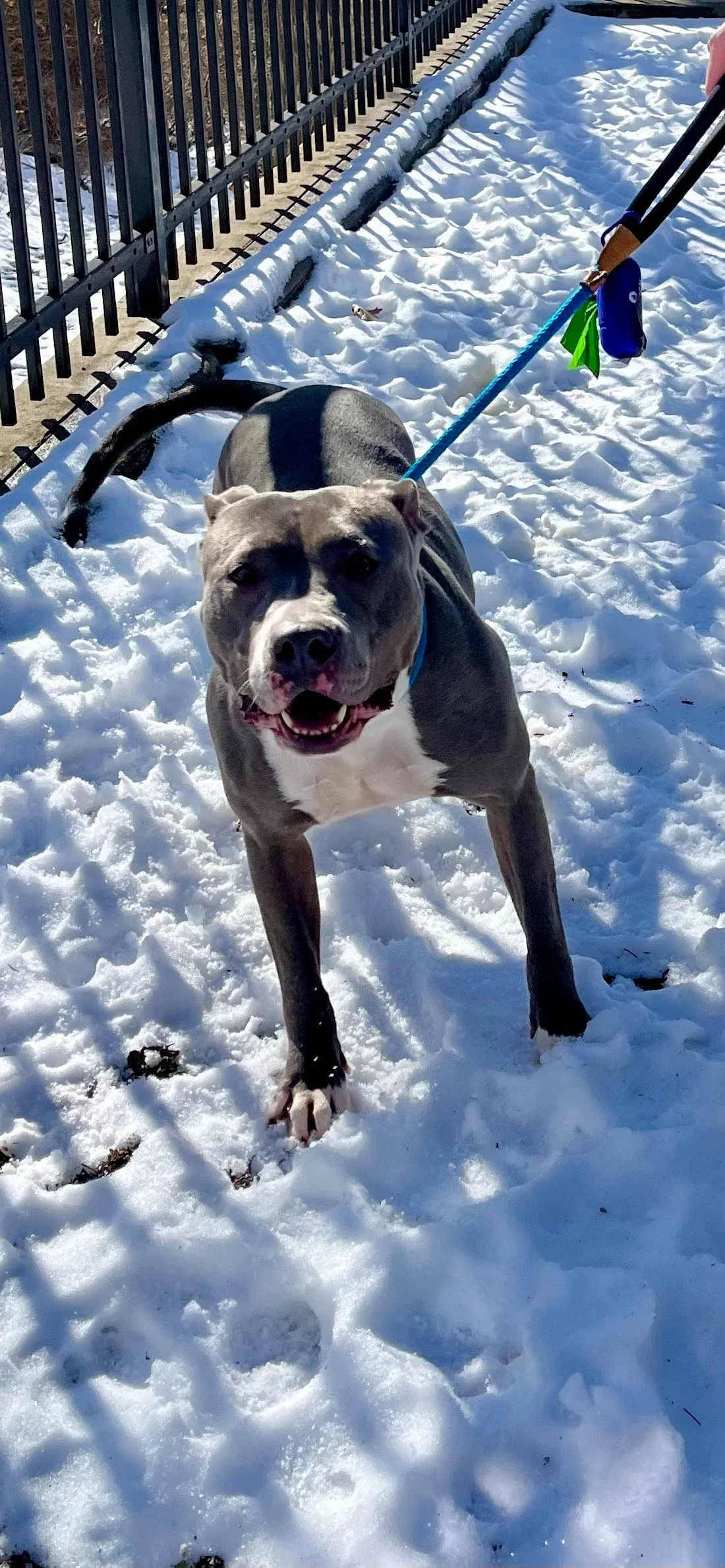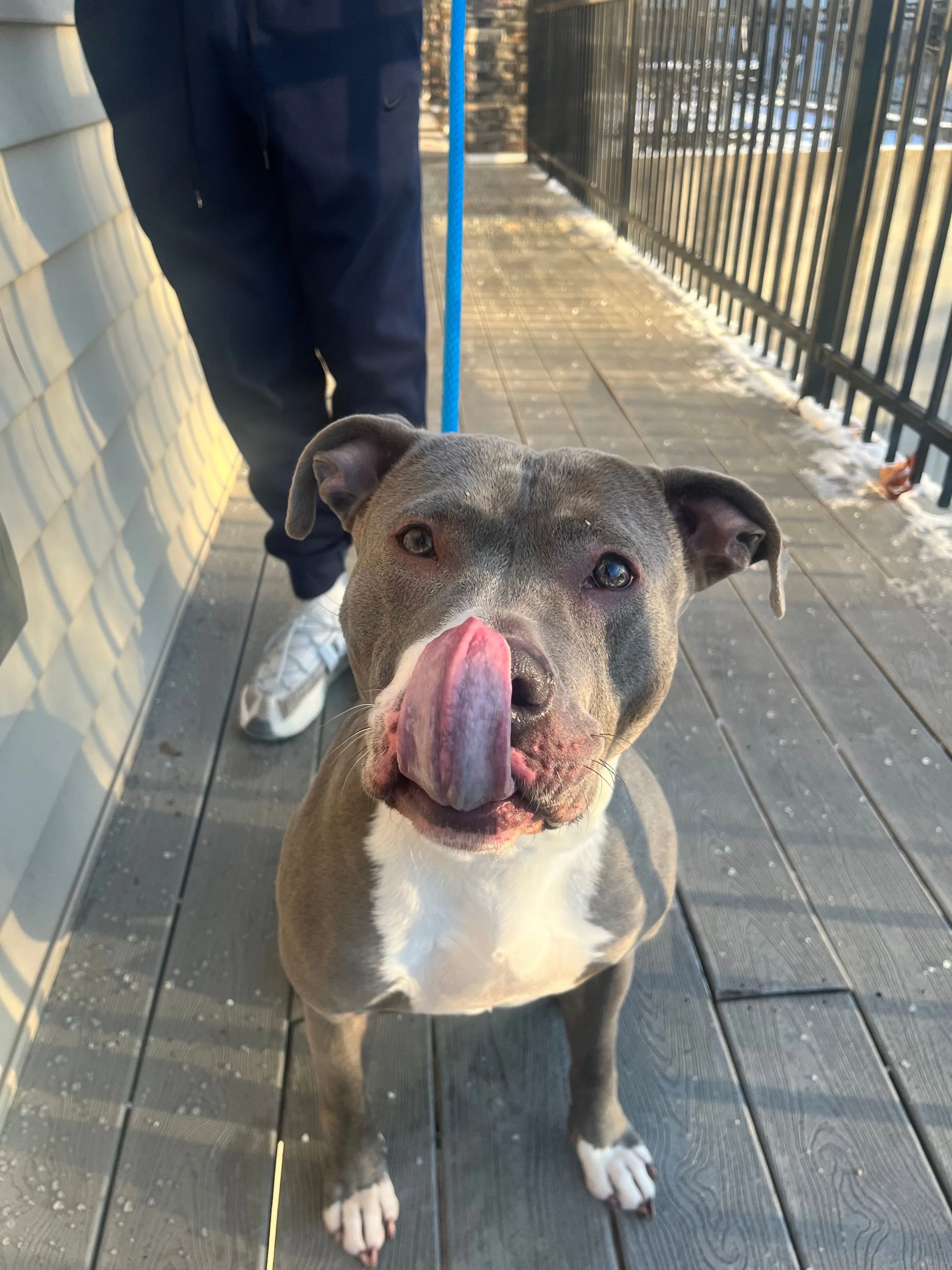We thought Dolly needed a break from shelter life and we thought she could use a little break. Here at Prospect Ridge we've been enjoying getting to know her personality. Dolly is an approximately 2-3 years old Pit Bull Terrier Mix, always happy and is ready to be your go-to companion! She would do great not only with someone who has a backyard, but the real perk would be that her adopter would enjoy daily walks with her. Do you like hiking? Dolly loves the outdoors and would likely make a great hiking companion.